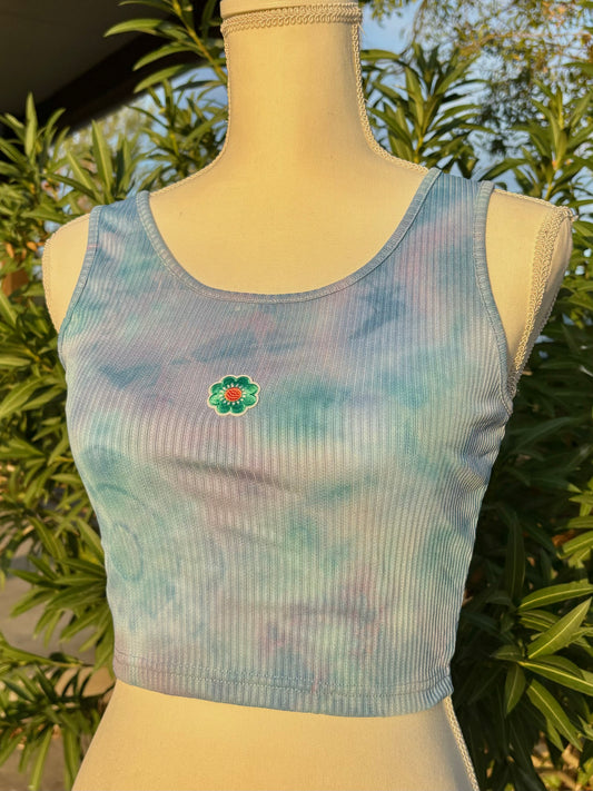 Pastel Geode Flower Ribbed Crop Top