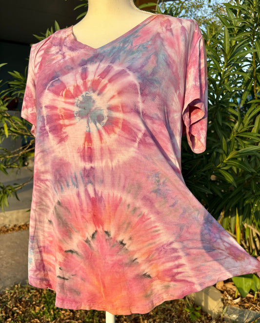Reverse Geode Tie Dye Neutral V-neck Tee Womens Medium