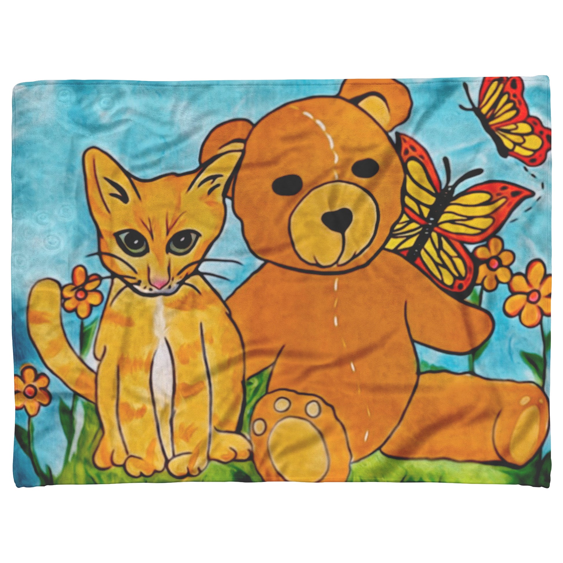 'A Field of Whimsy' Kitten and Teddy Bear Blanket