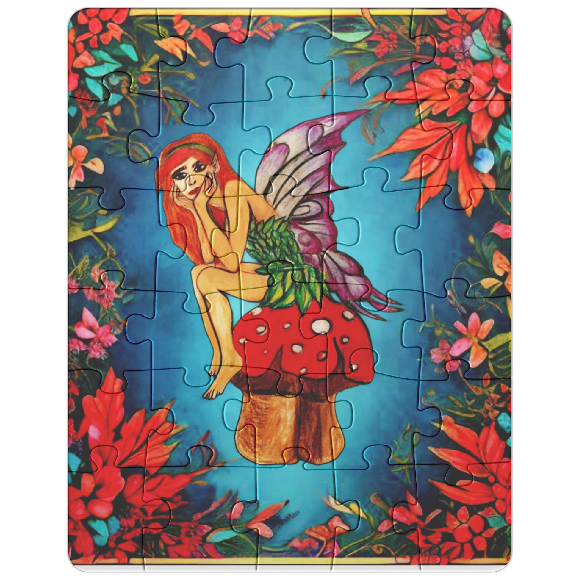 Fairy on a Mushroom Flower Nature Portrait Artwork Puzzle