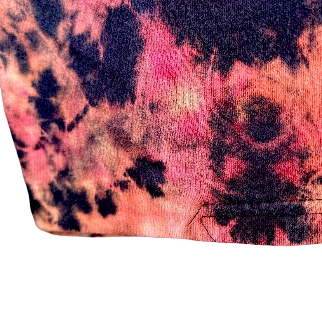 This unisex, upcycled shirt in size small is crafted from recycled cotton with a stunning reverse ice-dyed pattern in black, orange, and red. Featuring the original "Spiritual Crossword" design, it beautifully intertwines mind, body, spirit, soul, and YOU to reveal the magic of your true self. Please note a minor thread imperfection on the bottom backside, adding a unique touch to this eco-friendly treasure. Perfect for those who embrace both conscious style and soulful expression.